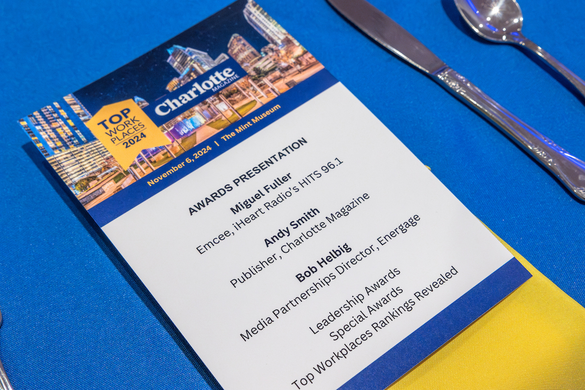 PHOTOS: 2024 Top Workplaces Celebration From our Dec. 6 event at The Mint Museum Uptown November 15, 2024 Charlotte Magazine Staff, Charlotte Magazine's 2024 Top Workplaces Awards. FacebookPinterestTwitterLinkedin